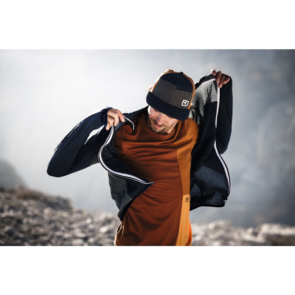 - Stylový potisk s horskou tématikou a logem ORTOVOX.