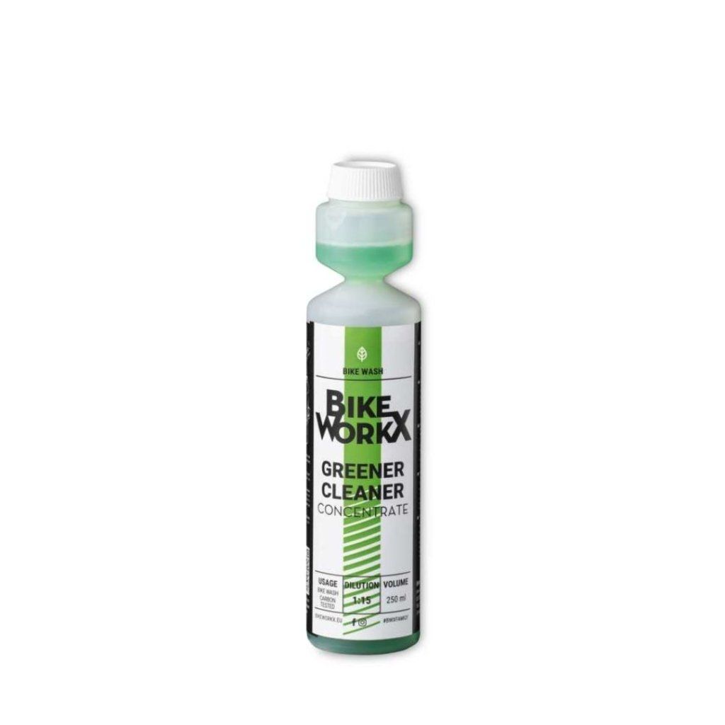 Bikeworkx Greener Cleaner Concentrate 1:15, dávkovací lahvička 250 ml, Koncentrovaný, biologicky odbouratelný čisticí prostředek s aktivní pěnou, pro mytí kol a komponentů.