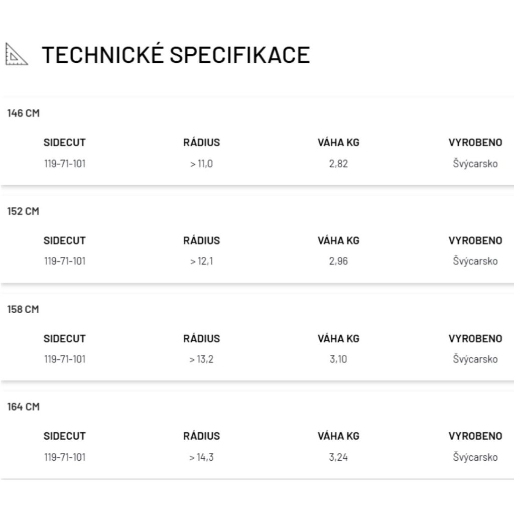ADAPTIVE CONTACT LENGHT – nejširší bod přední části lyže posunut dopředu + mírný rocker v špici, čím větší náklon lyže, tím větší kontakt hrany se sněhem; zlepšuje grip i stabilitu.